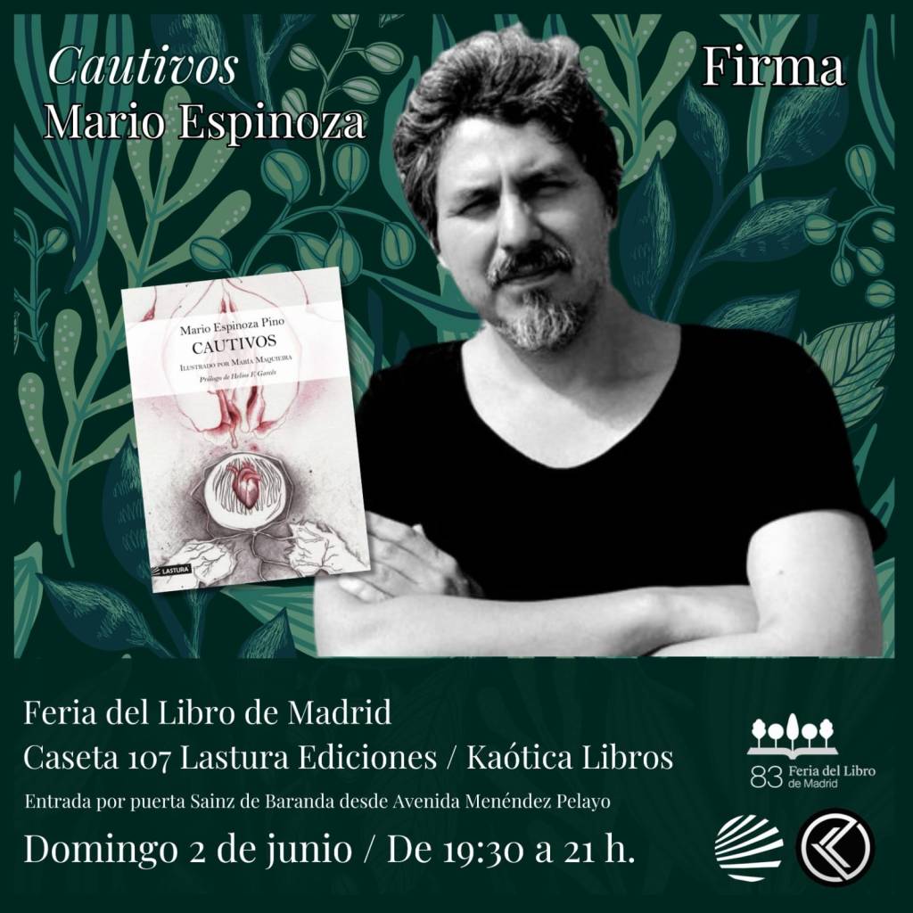 Huelga decir que será fantástico veros a todxs por allí, compartiendo un ratito de la tarde -la firma es de 19:30 a 21:00- mientras nos enredamos entre los versos e imágenes que dan vida a «Cautivos». Después podremos seguir estirando la noche tomando un vino por el Retiro.