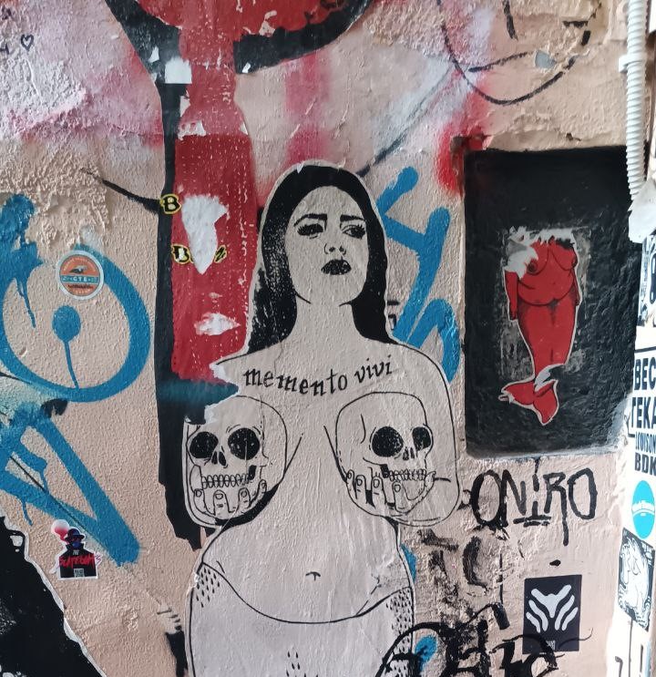 Como coda final, me gustaría traer una frase que descubrí en Napolés, en uno de sus muros: «Memento vivi» -contracción quizá de memento vivere-. Recuerda que has de vivir. Vale como apunte para afrontar el año que viene. Y ello me recuerda a paseos por el puerto de Nápoles con Caro, a conversaciones infinitas con Rubén por Madrid, a retomar el contacto con mi viejo amigo Rubén Hervás, conocer a Kari -su mujer- y a su pequeña Olivia, a momentos con la familia y a estos últimos días en Granada, junto a Pepe y Marga. Pero también a la conmemoración amistosa del pasado 15 de mayo y a tantas manifestaciones por lo común.